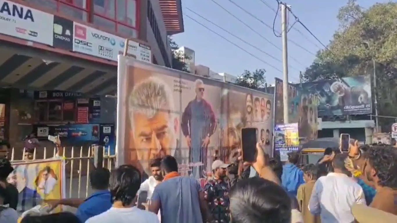 இந்நிலையில் நடிகர் அஜித்தின் திரைப்படம் இரண்டு வருட இடைவெளிக்கு பின் இன்று வெளியாகி உள்ளதால் கோவையில் உள்ள திரையரங்குகள் முன்பு ரசிகர்கள் பேனர் வைத்து மலர் தூவியும், மேளதாளத்துடன் பட்டாசுகள் வெடித்தும் ,ஆரவாரத்துடன் கொண்டாடி வருகின்றனர். குறிப்பாக கோவை சித்ரா பகுதியில் உள்ள பிராட்வே சினிமா திரையரங்கில் கடைசியாக அஜித் கார் ரேஸில் கலந்து கொண்ட படத்துடன் கூடிய கேக் வைத்து ரசிகர்களுக்கு சர்ப்ரைஸ் கொடுத்துள்ளனர். இதனை பலரும் வாங்கி செல்கின்றனர்.